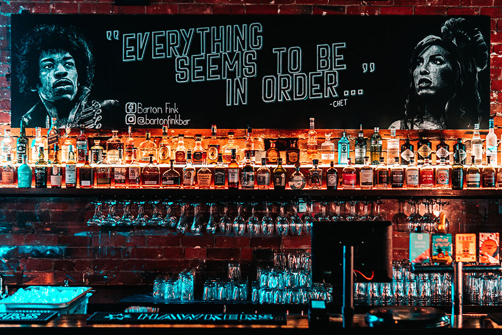 A bar inspired by the offbeat cult film character and dedicated to celebrating “the life of the mind.” From cinematic film reel lights and vintage 1940s decor to peeling wallpaper and a lone typewriter in the corner, Barton Fink is where nostalgia meets creativity.